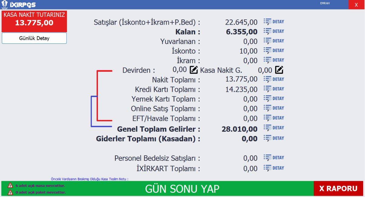 Nakit, Kredi Kartı, Cari, Yemek Kartı ve Online tahsilatlarınızı detaylı takip edebilir, gün sonunda satışlarınızın kar oranlarını detaylıca görebilirsiniz.